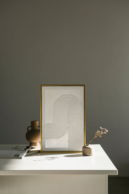 Gold Framed Plaster Canvased Painting - White Arched Plaster Detailing - Modern Boho Plaster Wall Art